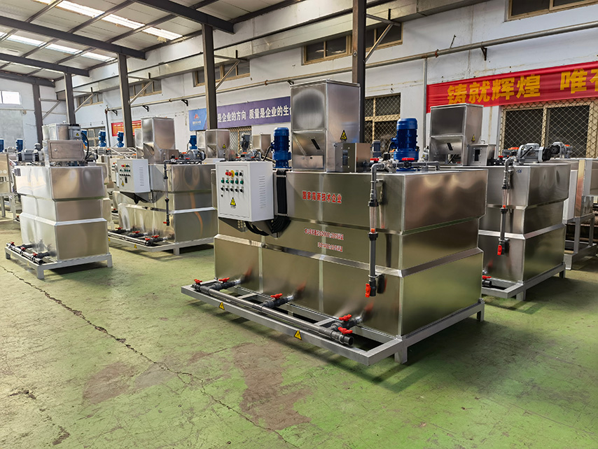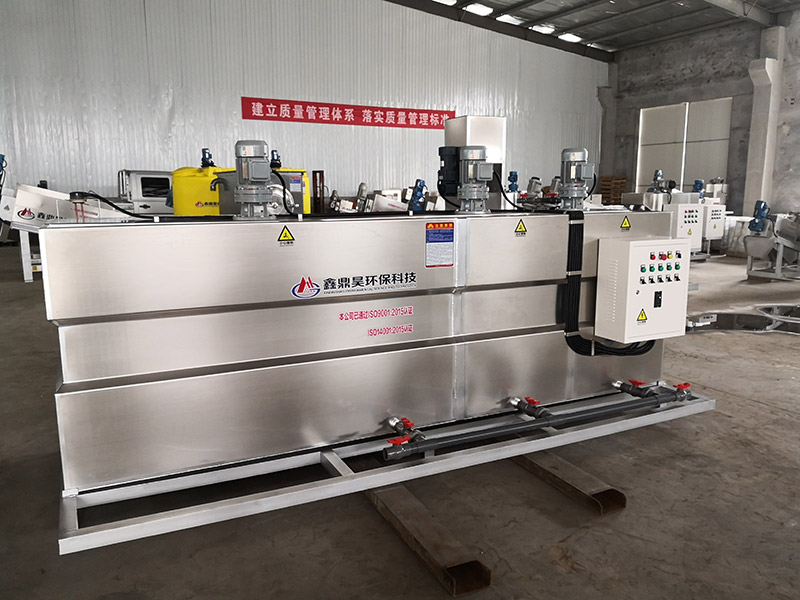 為解決此類難題,德州鑫鼎昊環(huán)保科技有限公司在吸收先進(jìn)工藝技術(shù)基礎(chǔ)上,研制開發(fā)了全自動(dòng)加藥機(jī)XDHJY系列一體化絮凝劑制備裝置。全自動(dòng)加藥機(jī)是集溶藥、熟化、投加于一體的全自動(dòng)加藥系統(tǒng)。該設(shè)備根據(jù)所需藥液的濃度,控制投加的藥劑量,自動(dòng)將絮凝劑進(jìn)行攪拌、溶解、熟化,再由加藥泵投加到處理水中,降低了絮凝劑使用過(guò)程中的復(fù)雜程度,并使投加過(guò)程自動(dòng)、準(zhǔn)確,而且節(jié)省藥量。